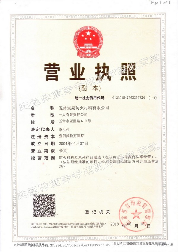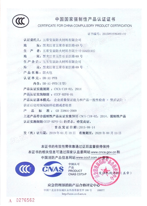 企業(yè)簡介 五常寶泉防火材料有限公司(黑龍江省寶泉消防設(shè)備有限公司)是主要制造、經(jīng)營、銷售防火阻燃材料系列產(chǎn)品。其中以自粘性阻燃包帶(ZFBD)、阻火包(PFB)、有機(jī)防火堵料(SFD)、室內(nèi)超薄型鋼結(jié)構(gòu)防火涂料(NCB(BCF)-1)為主要產(chǎn)品。寶泉牌防火材料系列產(chǎn)品是普通防火材料的更新?lián)Q代產(chǎn)品,防火性能優(yōu)異,具有普通防火材料沒有的諸多優(yōu)點(diǎn):施工方便、經(jīng)久耐用、耐火極限高、熱傳導(dǎo)率低、耐腐蝕、抗老化、無毒無害、環(huán)保、可以連續(xù)施工等特點(diǎn)。產(chǎn)品廣泛應(yīng)用于電力企業(yè)(各型電廠、輸變電公司、電建公司、電力公司)、石油化工企業(yè)、冶金業(yè)、通訊業(yè)、地鐵、隧道、...